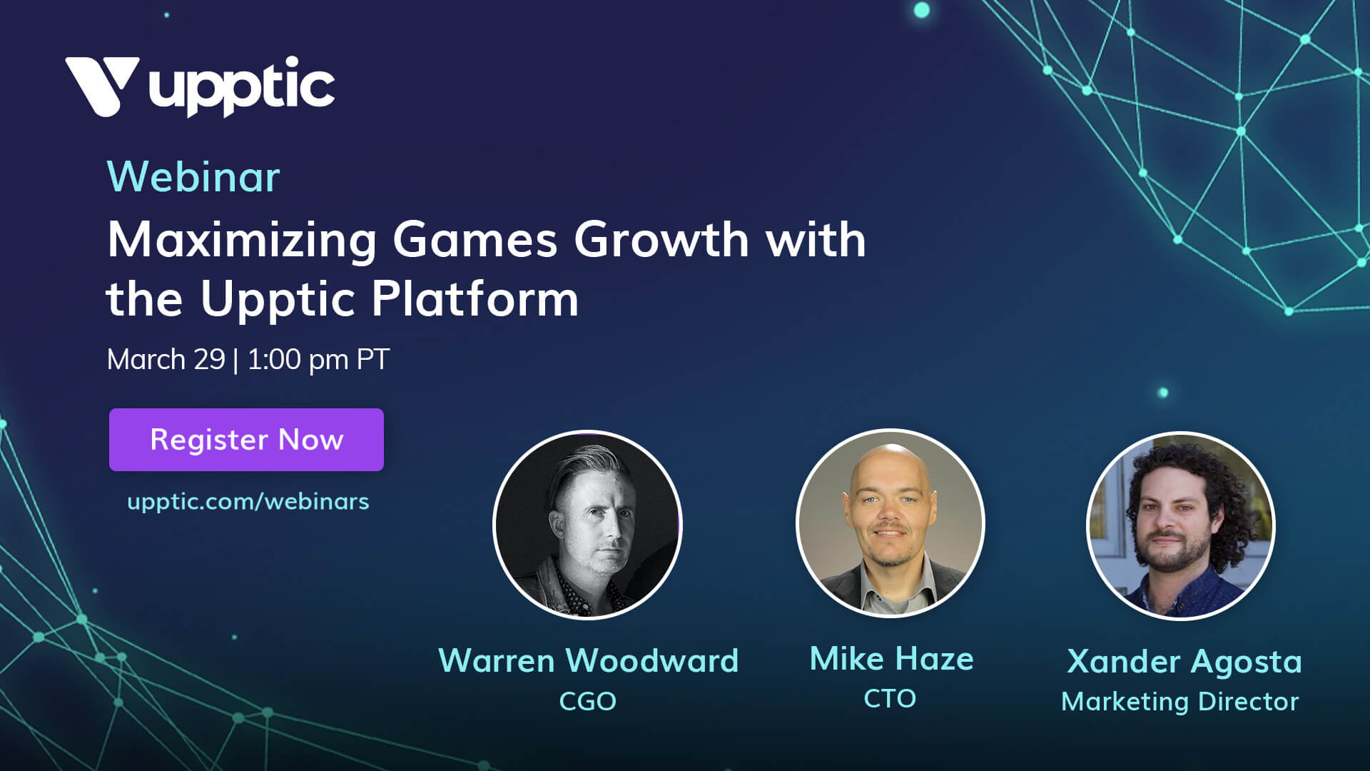 Join Upptic CGO Warren Woodward, CTO Mike Haze, and Marketing Director Xander Agosta as we unveil the Upptic Platform and our core methodology for sustainable games growth.